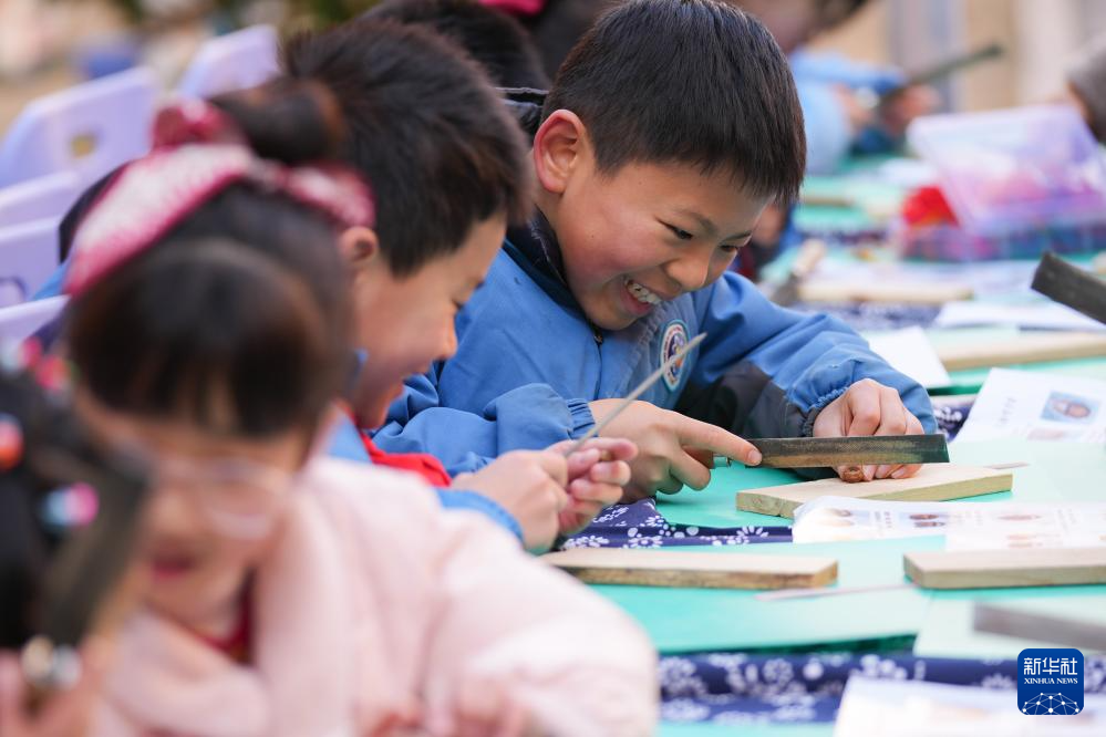 2月9日,在長沙(sha)市仰天(tian)湖桂(gui)花坪小(xiao)學(xue),小(xiao)朋友在體驗制(zhi)作核(he)雕。