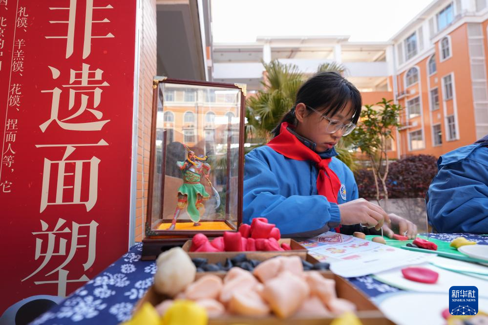 2月9日,在長沙市仰天湖(hu)桂花坪小學,小朋友(you)在體驗制作面塑。