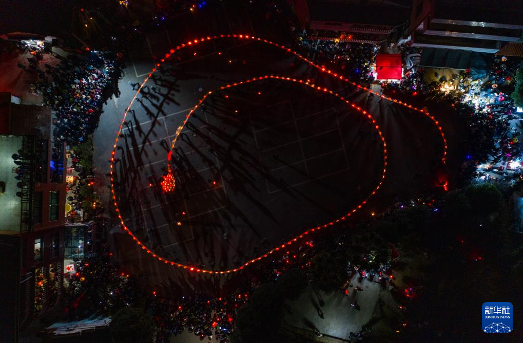 2月(yue)10日,赤松鎮虎巖村村民(min)給板凳龍龍頭點(dian)燃燭火,準備進行晚上的巡游。