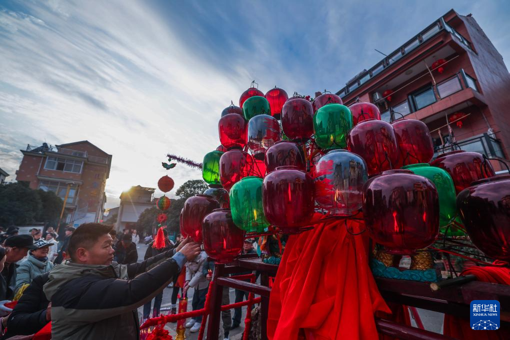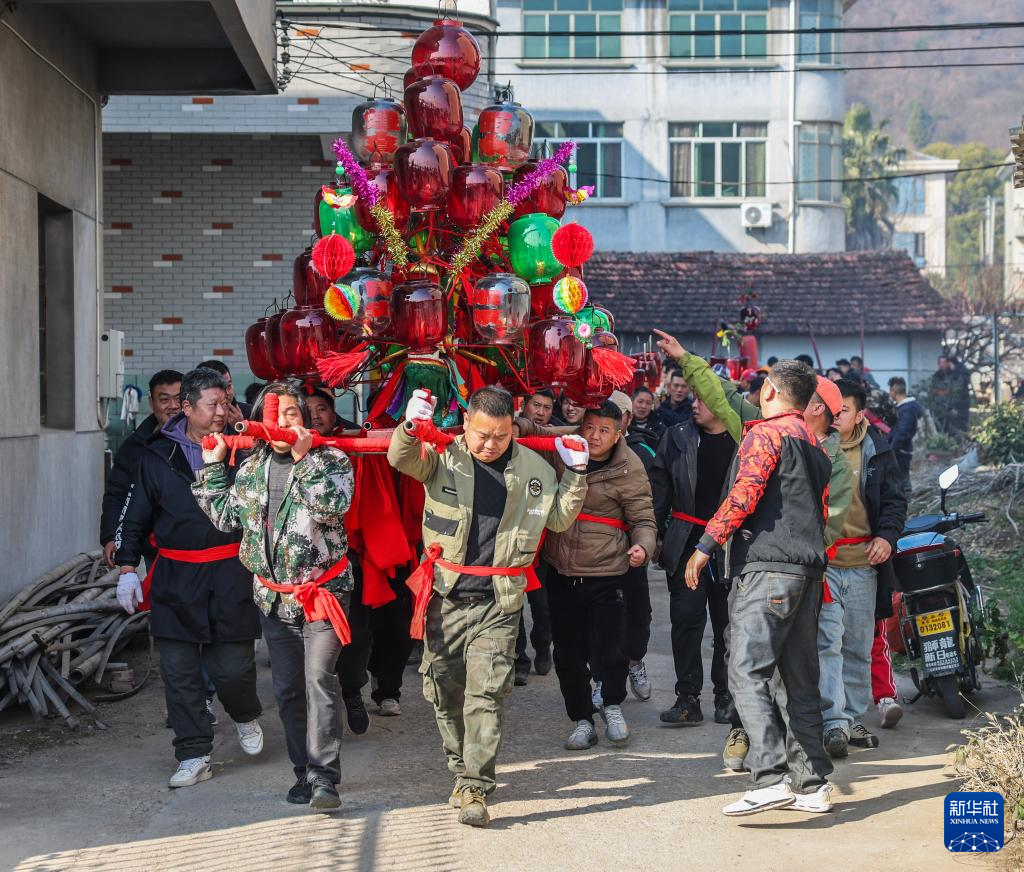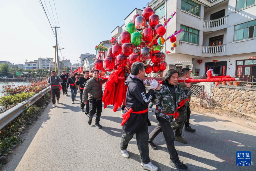 2月10日,赤松(song)鎮虎巖(yan)村村民抬著板(ban)凳龍在村里巡(xun)游。