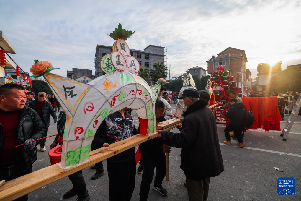 2月10日,赤松鎮虎巖村(cun)村(cun)民將(jiang)板凳龍連(lian)接起來(lai),準備進行(xing)晚(wan)上(shang)的巡游。