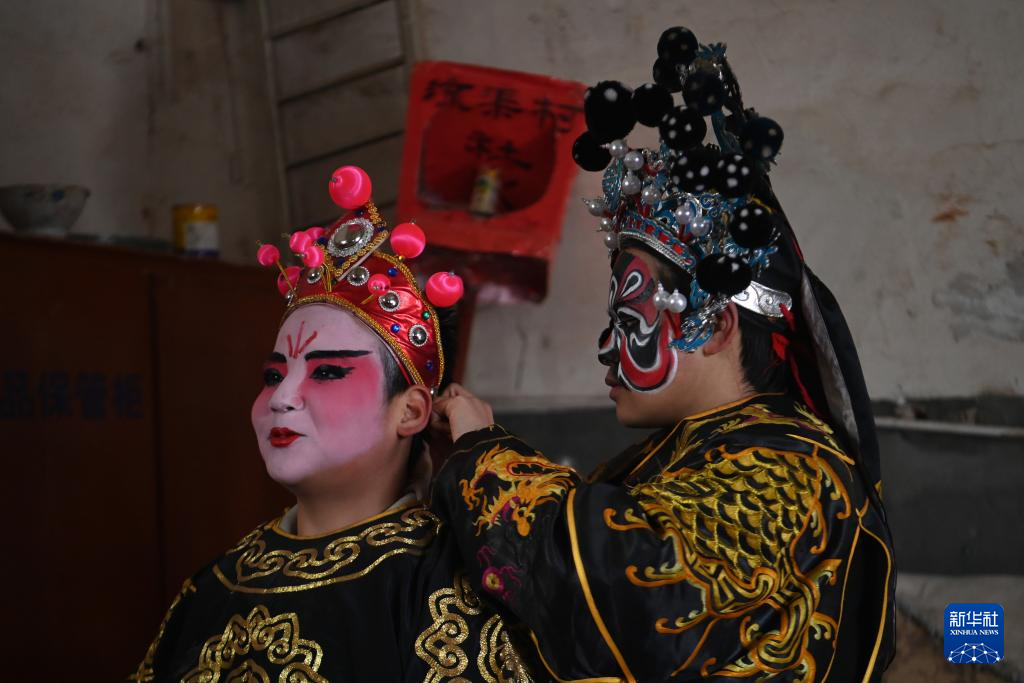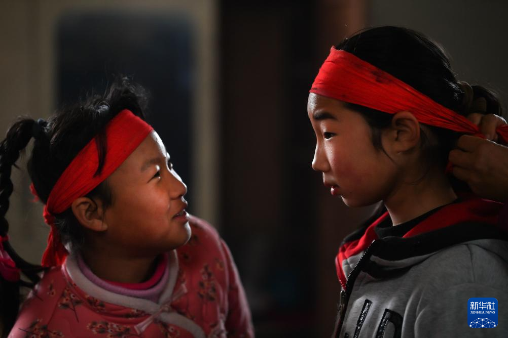 2月9日,隴縣曹家灣(wan)鎮流渠村社(she)火隊的(de)孩子們在化妝時互動。
