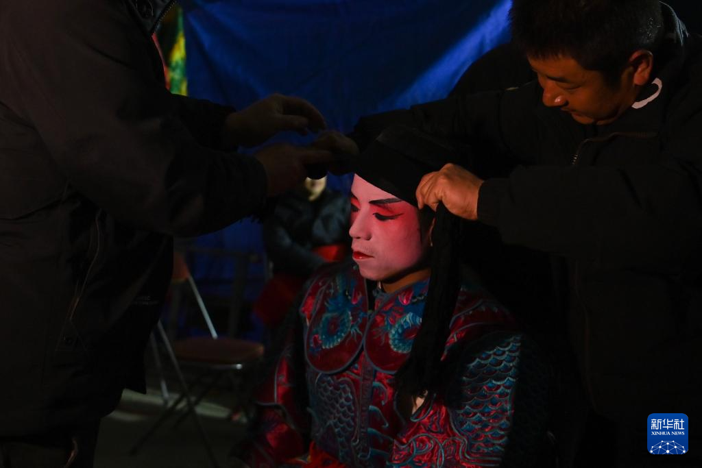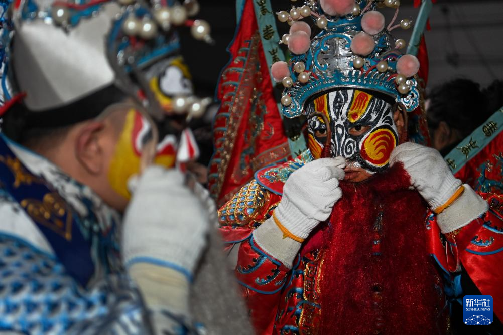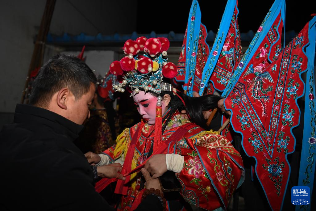 隴縣東南鎮黃(huang)花峪村是著(zhu)名的“馬社(she)火(huo)村”,每年春(chun)節(jie)期間,村民都會表演馬社(she)火(huo),挨家(jia)挨戶送上(shang)新(xin)春(chun)祝福。為了在(zai)清晨出發,社(she)火(huo)隊(dui)(dui)通常在(zai)凌晨三四(si)點(dian)就開始(shi)準備(bei),演員(yuan)、化妝師、鑼(luo)鼓隊(dui)(dui)和后勤保障人員(yuan)從黑夜忙到(dao)天(tian)明,共同呈現黃(huang)土地(di)上(shang)的新(xin)春(chun)文化盛(sheng)宴。