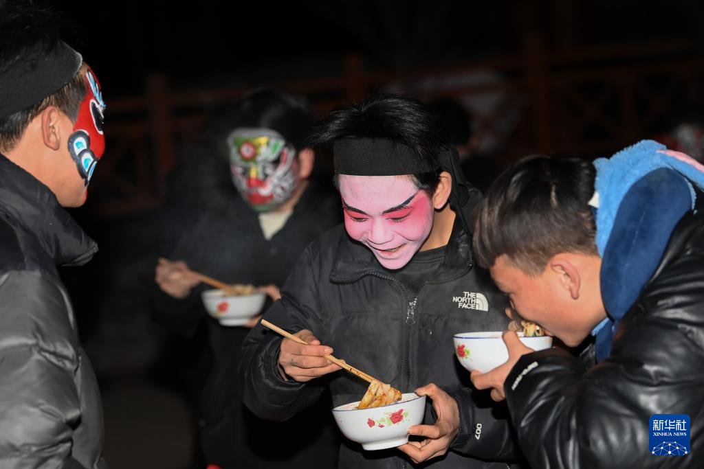2月11日凌晨,黃花峪村社火隊成員(yuan)在吃(chi)早餐。