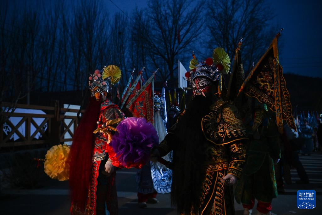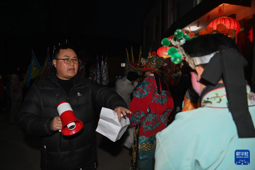 2月(yue)11日(ri)凌晨,黃花峪村村支書田(tian)濤(tao)在組織社火隊排隊出發。