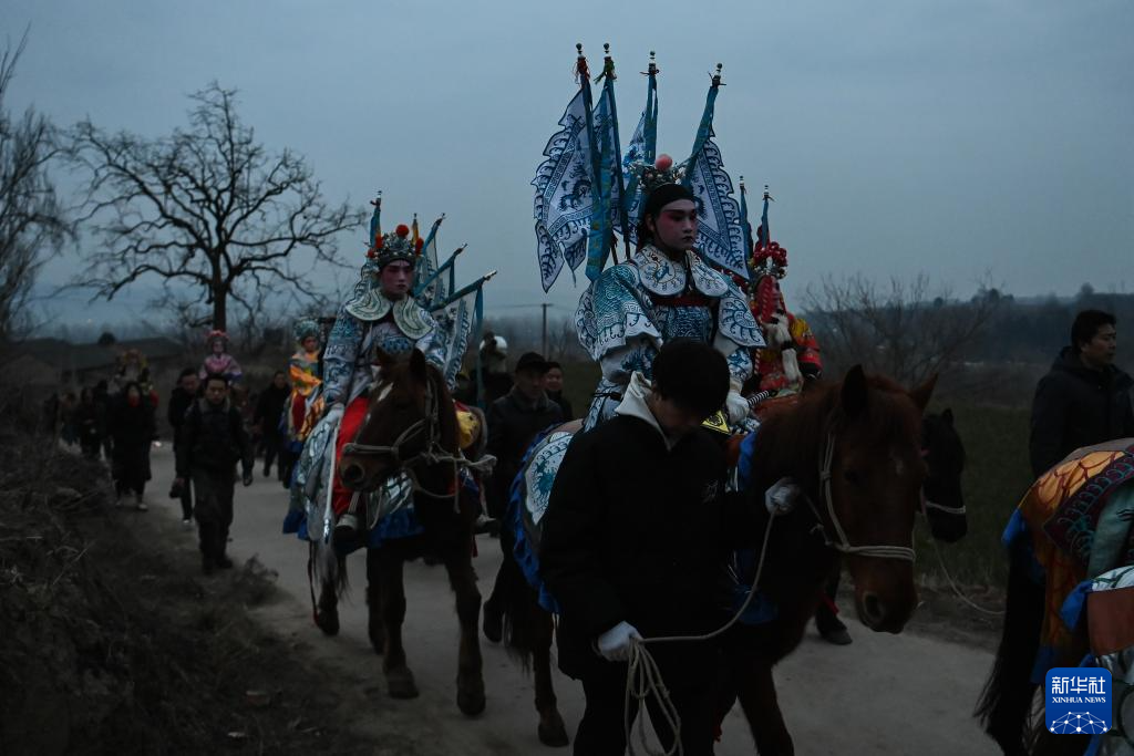 隴縣東南鎮(zhen)黃花峪村是著名(ming)的(de)“馬(ma)社(she)火(huo)村”,每(mei)年春(chun)(chun)節期(qi)間,村民都會表(biao)演馬(ma)社(she)火(huo),挨家挨戶(hu)送上(shang)新春(chun)(chun)祝福。為了在(zai)清晨(chen)出發,社(she)火(huo)隊通(tong)常在(zai)凌晨(chen)三四點就開始準(zhun)備,演員、化(hua)妝師、鑼鼓隊和后勤保障人員從黑夜忙(mang)到天(tian)明(ming),共同(tong)呈現黃土地上(shang)的(de)新春(chun)(chun)文化(hua)盛宴。