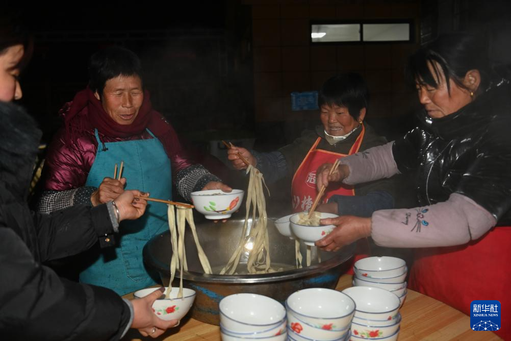 2月11日凌晨(chen),黃花峪(yu)村的(de)村民為社火隊成員準(zhun)備早餐(can)。