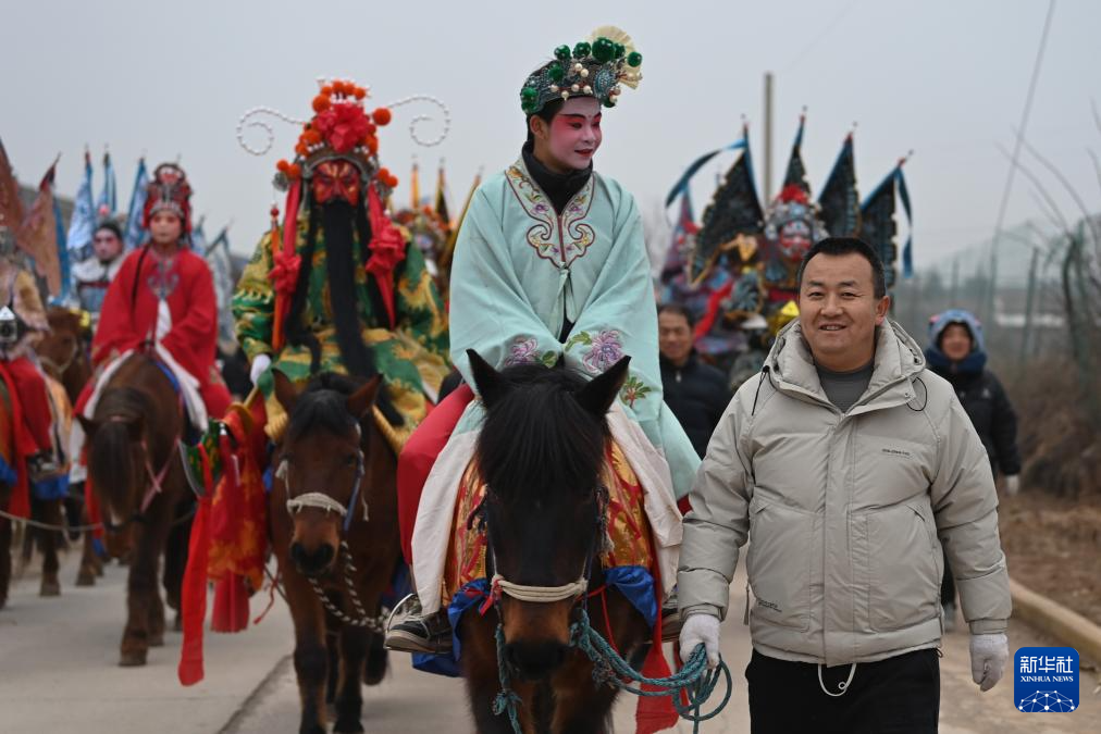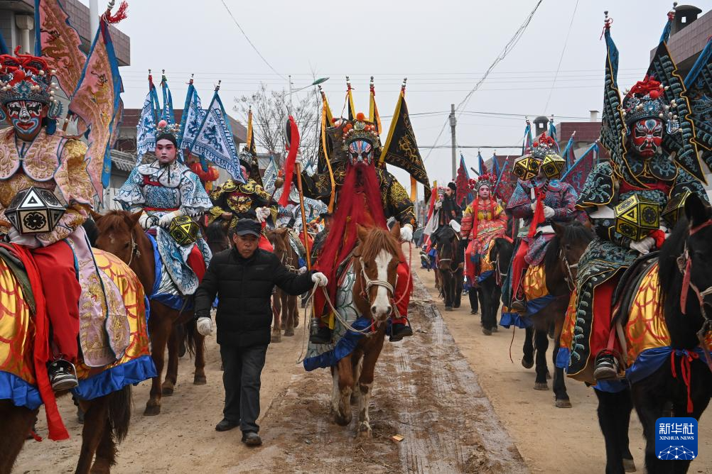 2月11日上午,黃花峪村社火(huo)隊在(zai)游演途中。