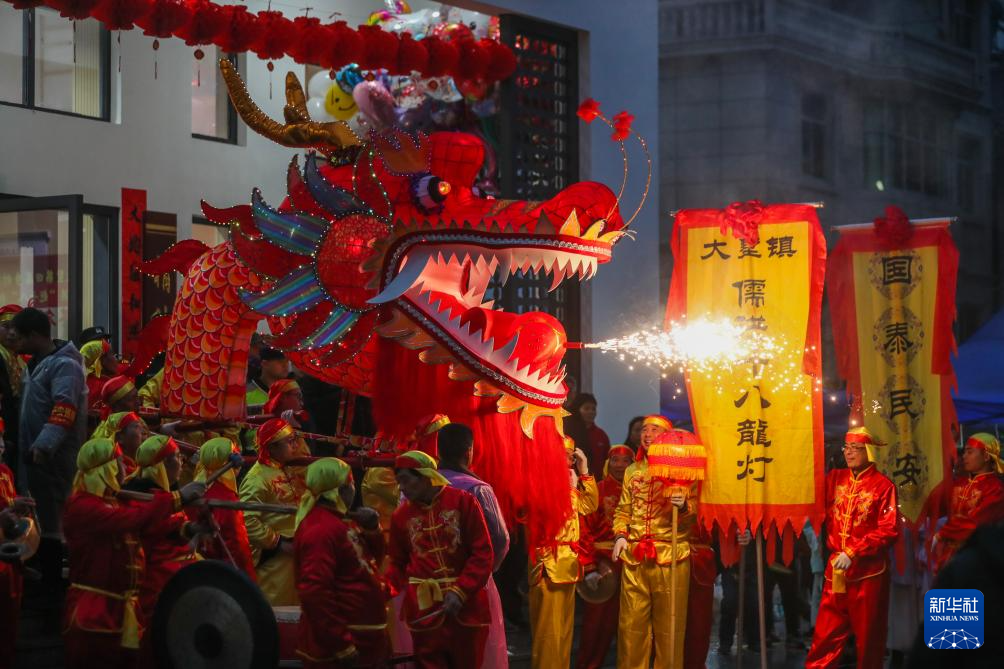2月15日,大墅鎮儒洪村(cun)村(cun)民們舉行“趕(gan)十(shi)八”舞龍(long)表演。