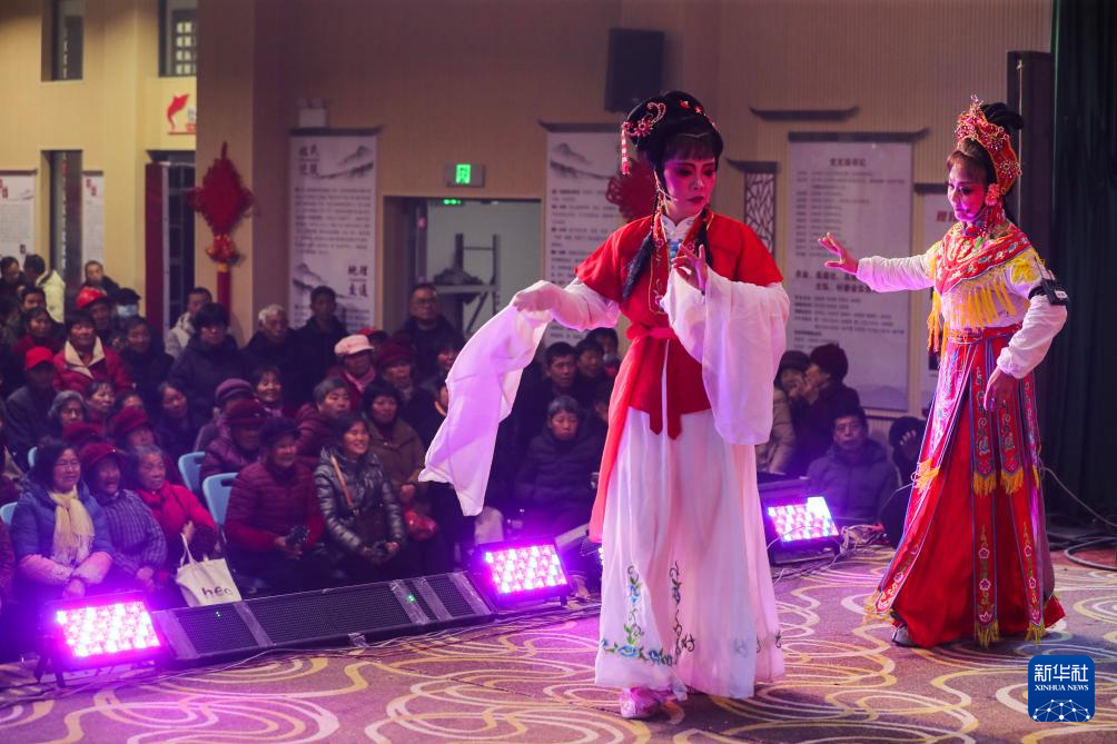 2月15日,村民在(zai)大墅(shu)鎮儒洪村文化(hua)禮(li)堂觀(guan)看傳統戲曲表演。