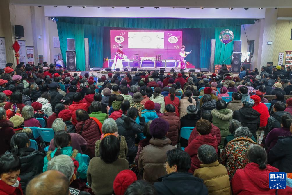 2月15日,大墅鎮儒洪村(cun)村(cun)民們(men)在文化禮堂觀看(kan)傳(chuan)統(tong)戲曲表演。