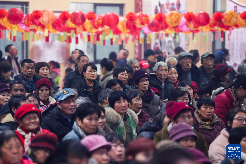 2月15日,大墅鎮(zhen)儒(ru)洪村村民(min)們(men)在文化禮堂觀看傳統(tong)戲曲表演。