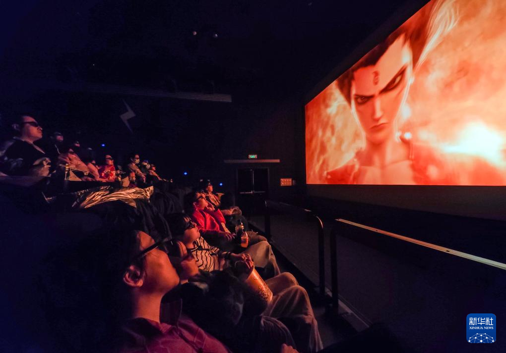 2月(yue)16日,在(zai)北(bei)京市(shi)東城區一家(jia)影院(yuan),觀眾在(zai)觀看4D版《哪吒(zha)之魔童鬧海》。