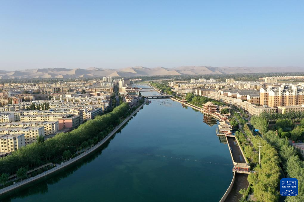 這(zhe)是2023年6月14日拍攝的敦煌黨河風情線(無人機照片)。
