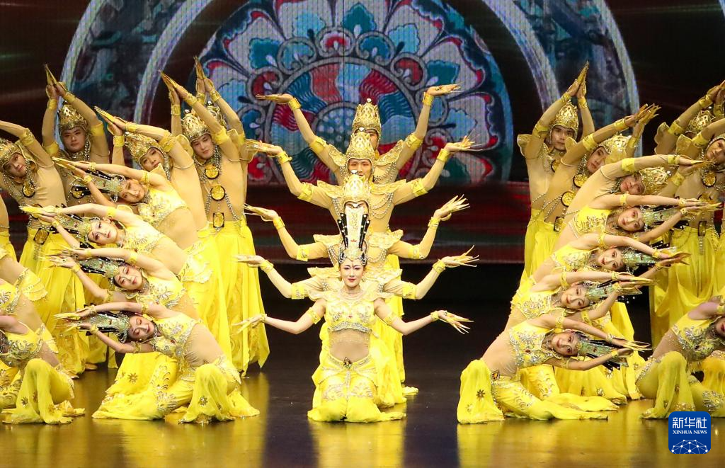 2024年9月20日,演員在第(di)七屆絲綢之路(敦煌(huang))國(guo)際文(wen)化(hua)博覽會舉行期間表演大型情(qing)景音畫劇《千手千眼》。