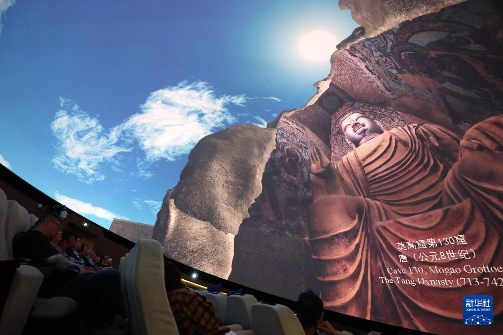 2024年9月4日,游客(ke)在(zai)莫高窟數(shu)字展示中心(xin)觀看球幕電影(ying)《夢(meng)幻(huan)佛宮》。