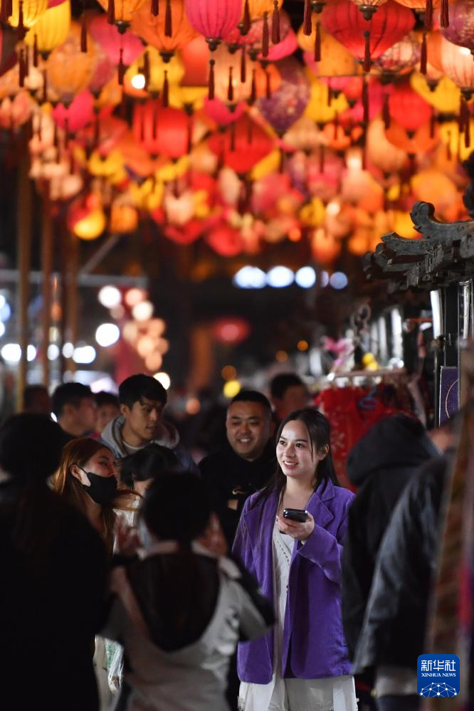 2023年(nian)3月16日,游客在敦(dun)煌(huang)夜市游覽。