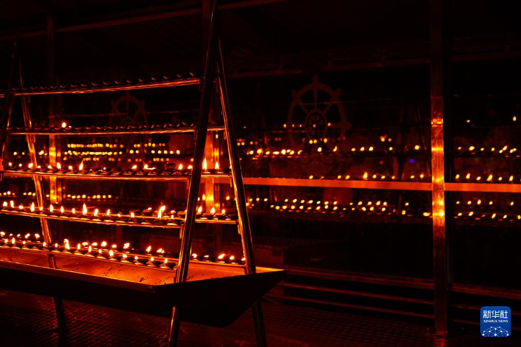 2月21日,斯里蘭卡阿努拉達普拉的魯萬維里薩亞舍利塔里點燃祈福的蠟燭。
