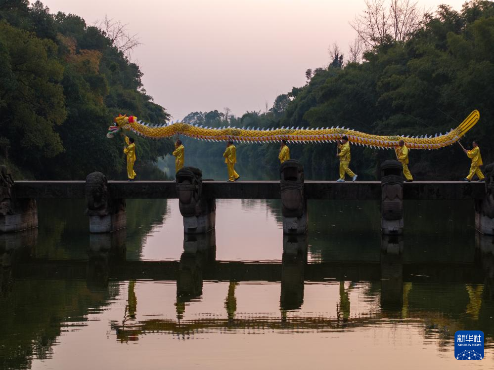 2月28日,在四川省瀘州市瀘縣全國重點文物保護單位龍腦橋景區,一支雨壇彩龍隊進行舞龍表演。瀘州雨壇彩龍被列入第一批國家級非物質文化遺產名錄。