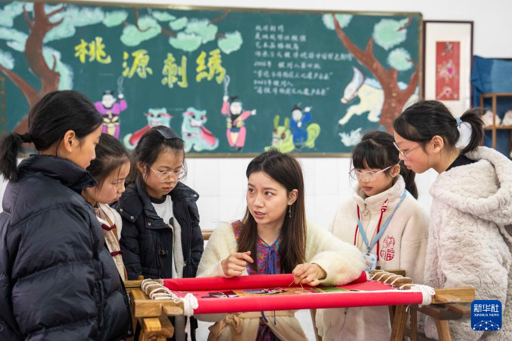 近年來,湖南省常德市桃源縣充分利用地方文化資源,常態化開展非遺進校園活動,將當地非遺項目——桃源刺繡技藝引進課堂,定期邀請非物質文化遺產代表性傳承人走進校園,進行傳統文化授課,讓學生親身感受非物質文化遺產的魅力,讓傳統文化薪火相傳。