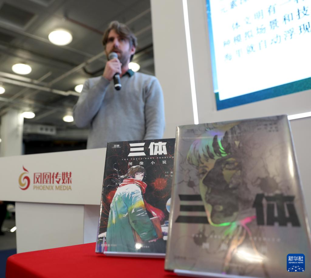3月11日,嘉賓在英國倫敦書展上舉行的《三體》圖像小說國際版權推介會上發言。