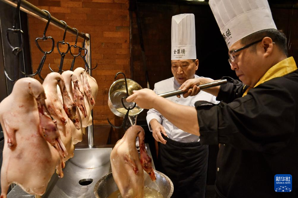 北京烤鴨是北京的美食名片。2008年烤鴨技藝(全聚德掛爐烤鴨技藝)被列入第二批國家級非物質文化遺產名錄,如今全聚德掛爐烤鴨這項技藝已經經過了七代師徒傳承。