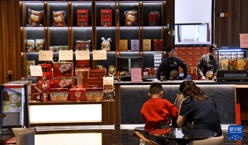 這是全聚德烤鴨店和平門總店大廳內的掛爐烤鴨文創店(3月13日攝)。