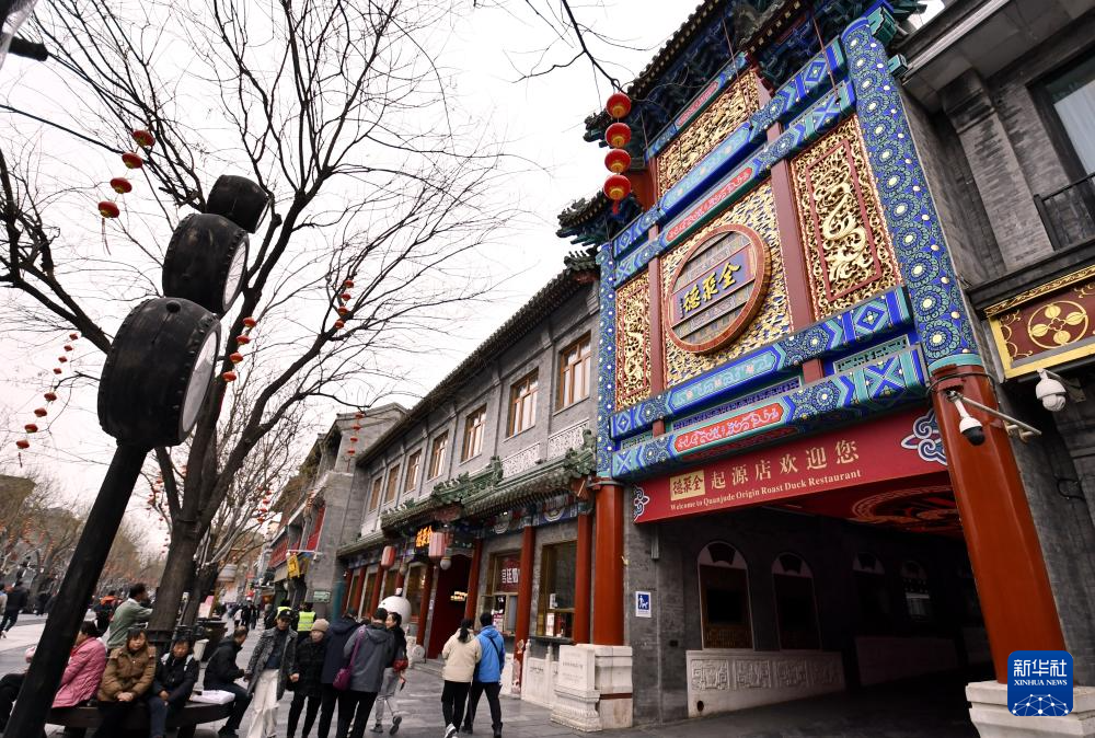 位于北京前門步行街的全聚德起源店(3月14日攝)。