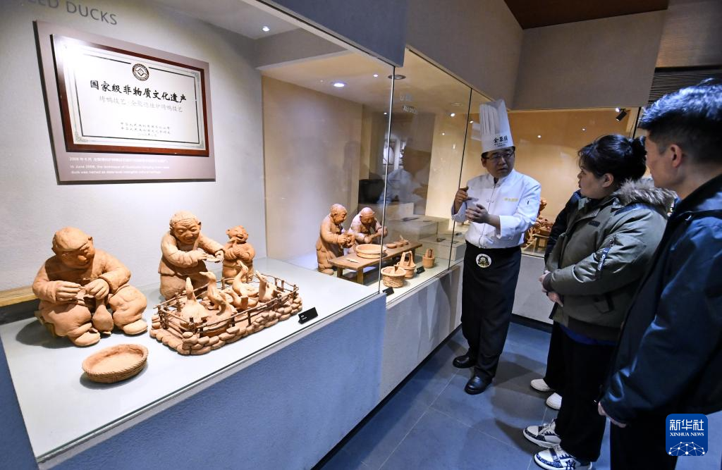 顧客在全聚德烤鴨店和平門總店的全聚德博物館內參觀(3月13日攝)。