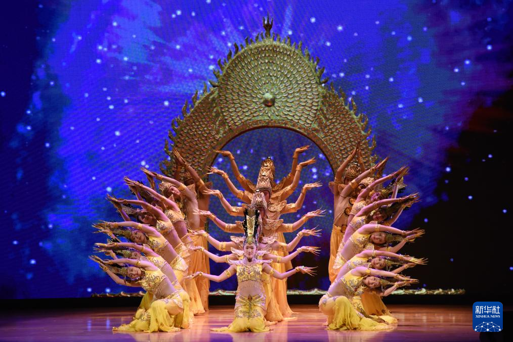 3月15日,中國殘疾人藝術團演員在臺北表演《千手觀音》。新華社記者 劉斐 攝