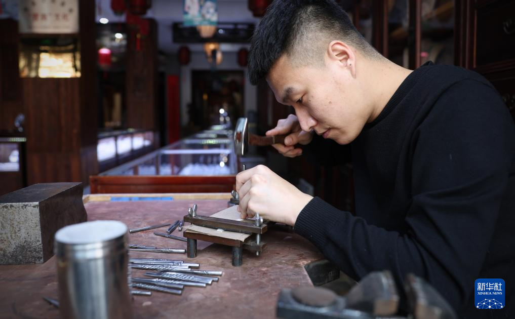 一張銀片錘萬遍,一件銀飾藏匠心。傳承120余年的老世興金銀制作技藝工藝精細、紋樣豐富、造型獨特。作為年輕的技藝傳承人,孫朋說,“學習制作銀藝不僅讓我掌握了一門技藝,更讓我感受到傳統文化的魅力。我希望未來能像師父一樣,將這門技藝傳承下去。”