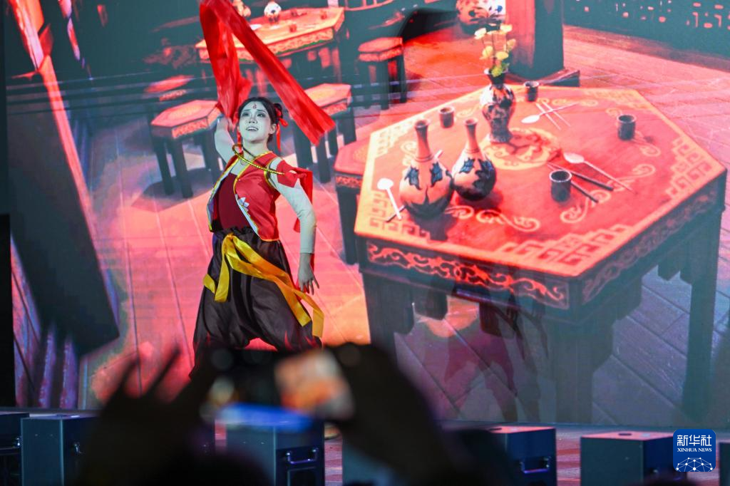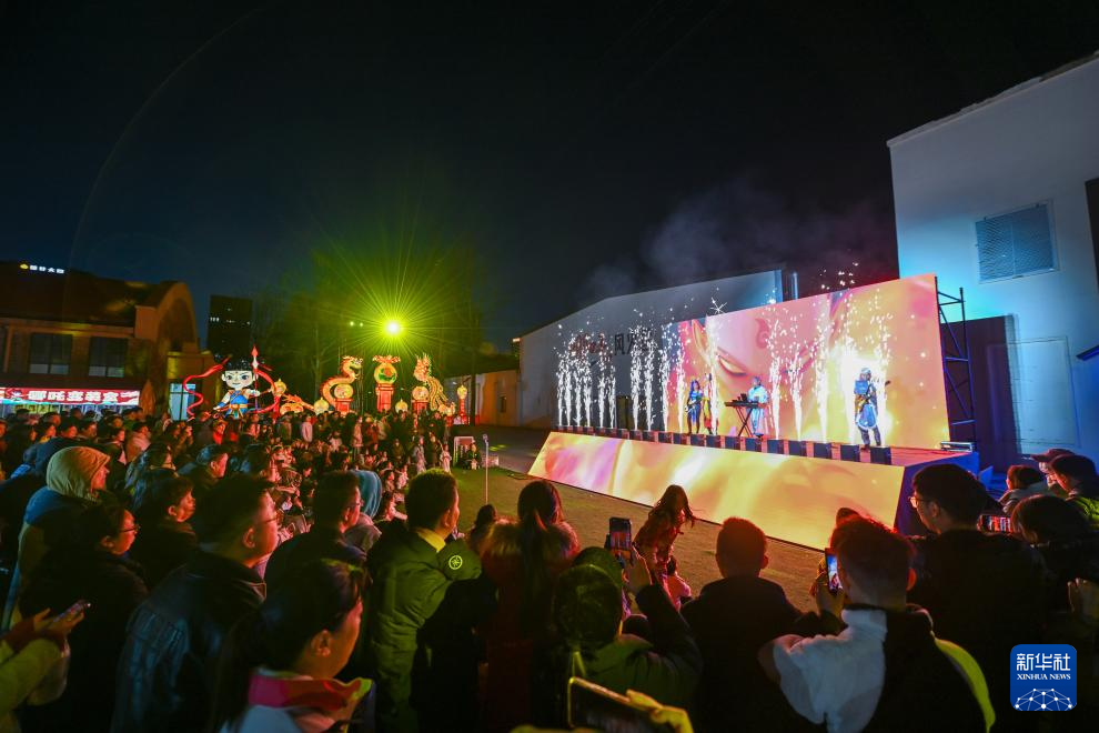 游客在天津哪吒小鎮觀看演出(3月16日攝)。