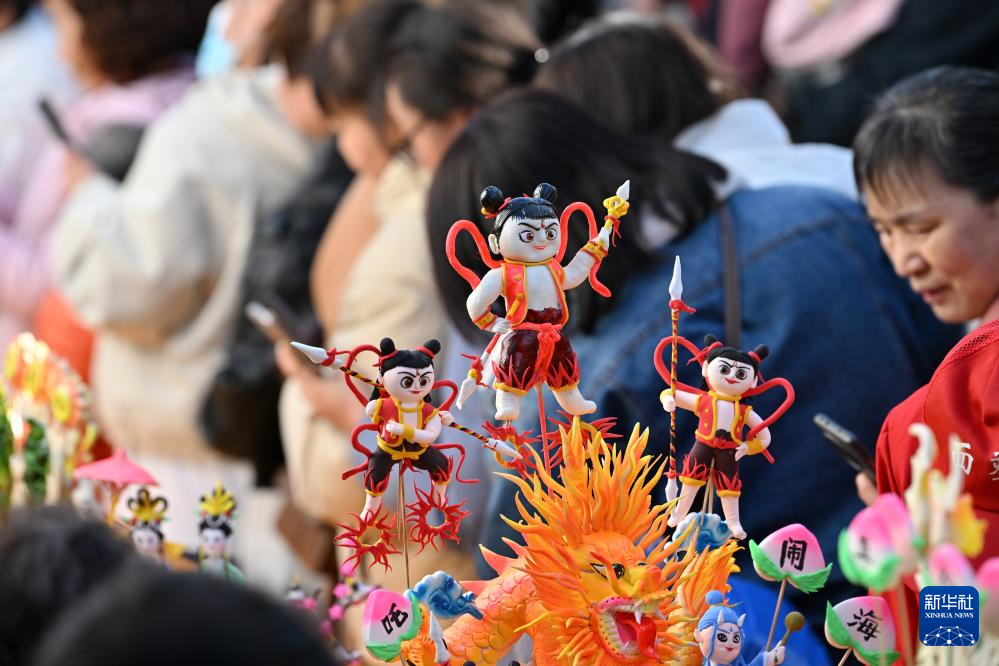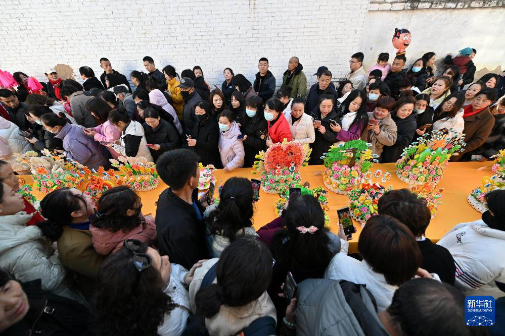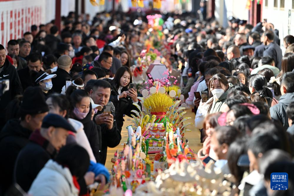當日是農歷二月十九,每年農歷這一天,呂梁山區的山西省嵐縣嵐城鎮的鄉親們都會將精心制作的面塑擺上街頭進行展示,形成一條百米長的“面塑長河”。這些面塑作品造型各異、精巧絕倫,寄托了人們對美好生活的期盼。
