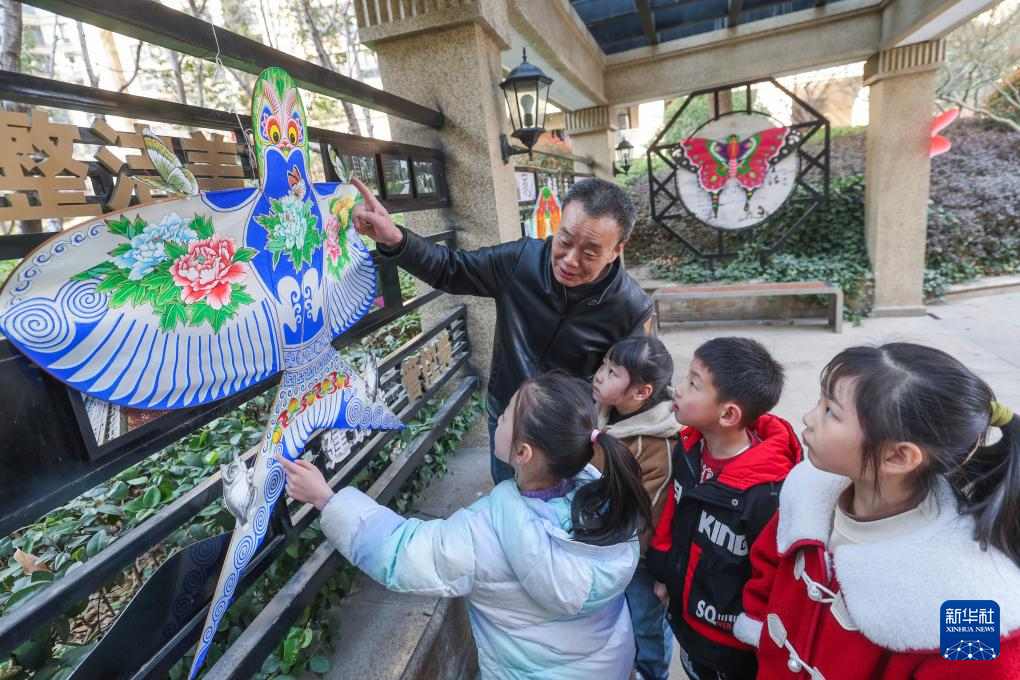 3月19日,中國風箏協會理事金月強給孩子們介紹傳統風箏的結構和特點。