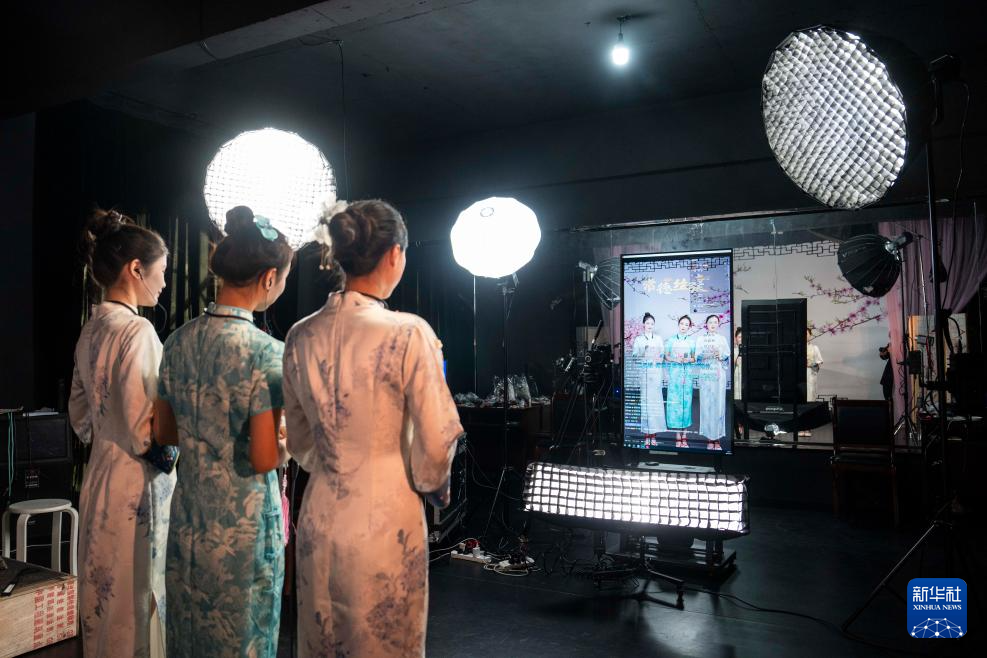 3月17日,常德絲弦藝術劇院青年演員在進行常德絲弦的推廣直播。