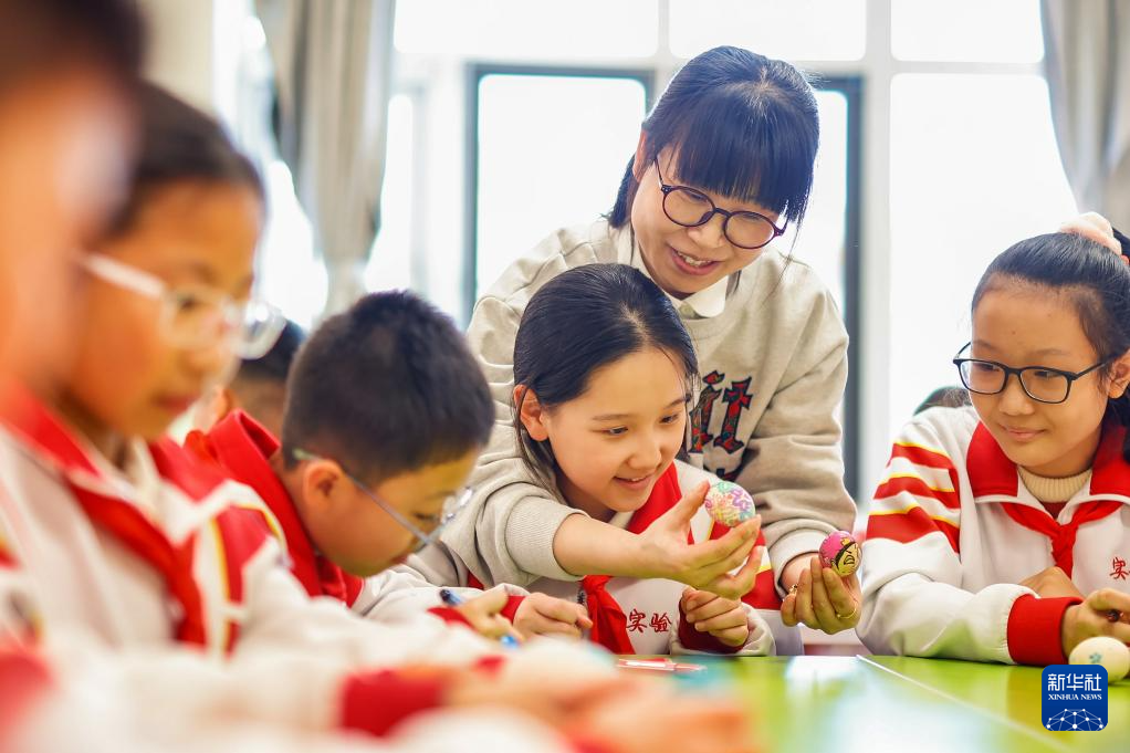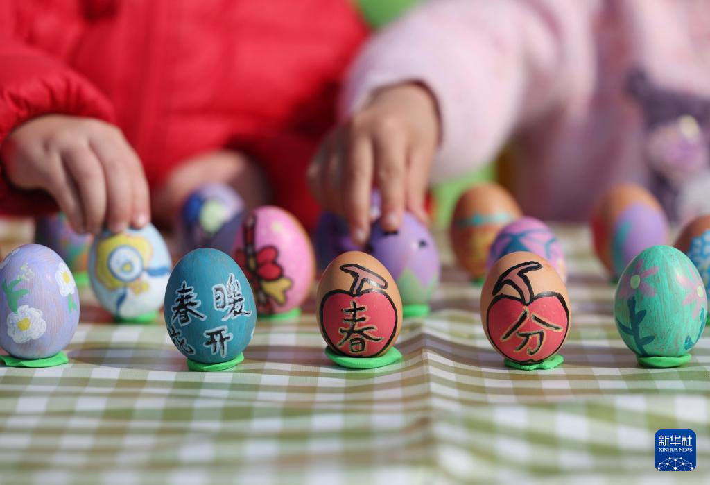 3月20日,天津市濱海新區塘沽實驗小學的學生們繪彩蛋,了解春分節氣習俗。