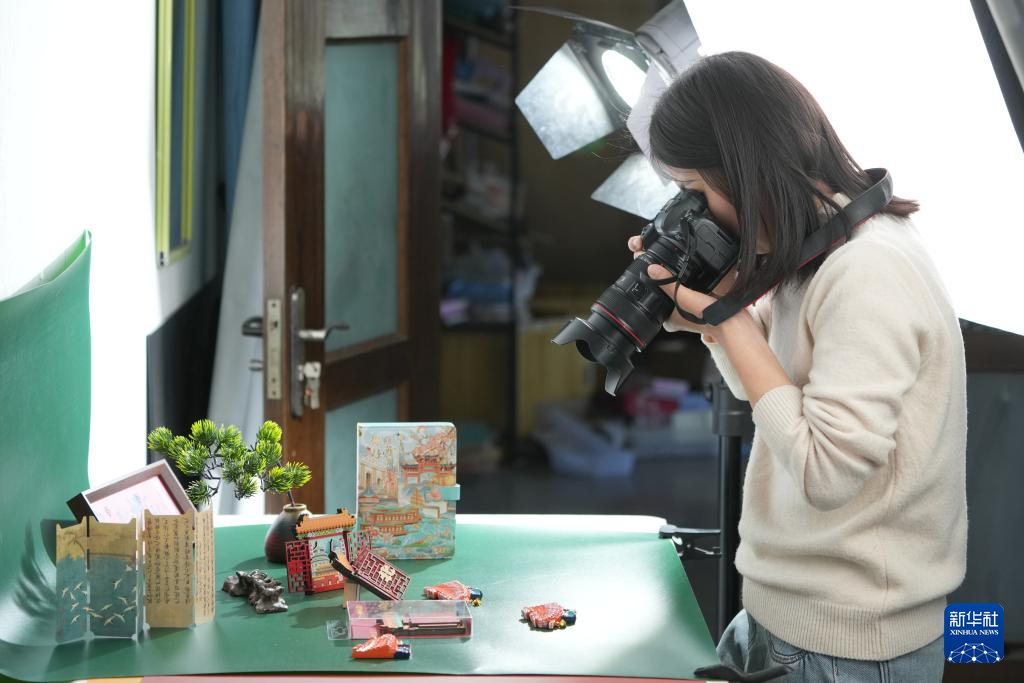 3月20日,在寧波素年工藝品有限公司,工作人員在拍攝產品宣傳照。