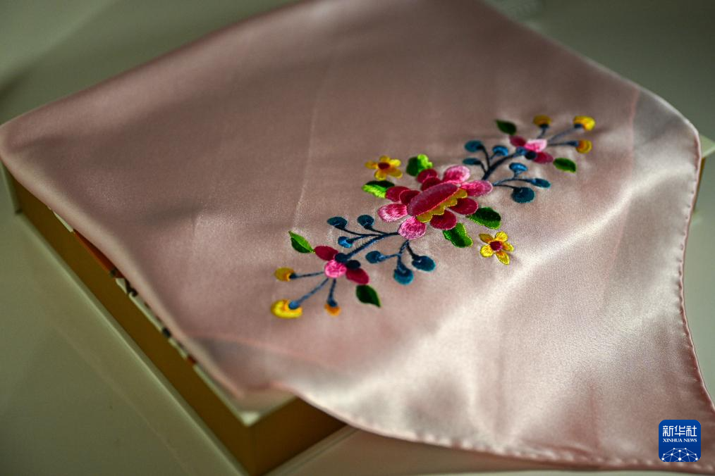 這是3月14日在任煒漢繡工作室拍攝的漢繡文創產品。