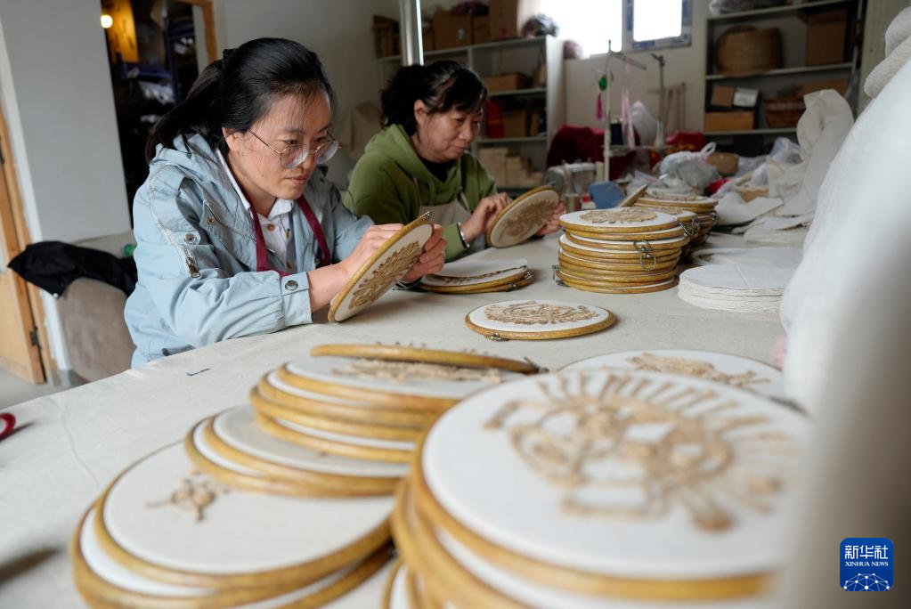 3月26日,在寧夏非遺麻編傳承基地,當地村民在制作麻編產品。