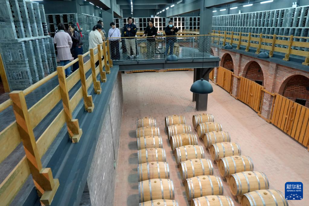 3月26日,參觀者在大樂之野——夏多蘭民宿葡萄酒窖了解葡萄酒窖藏知識。