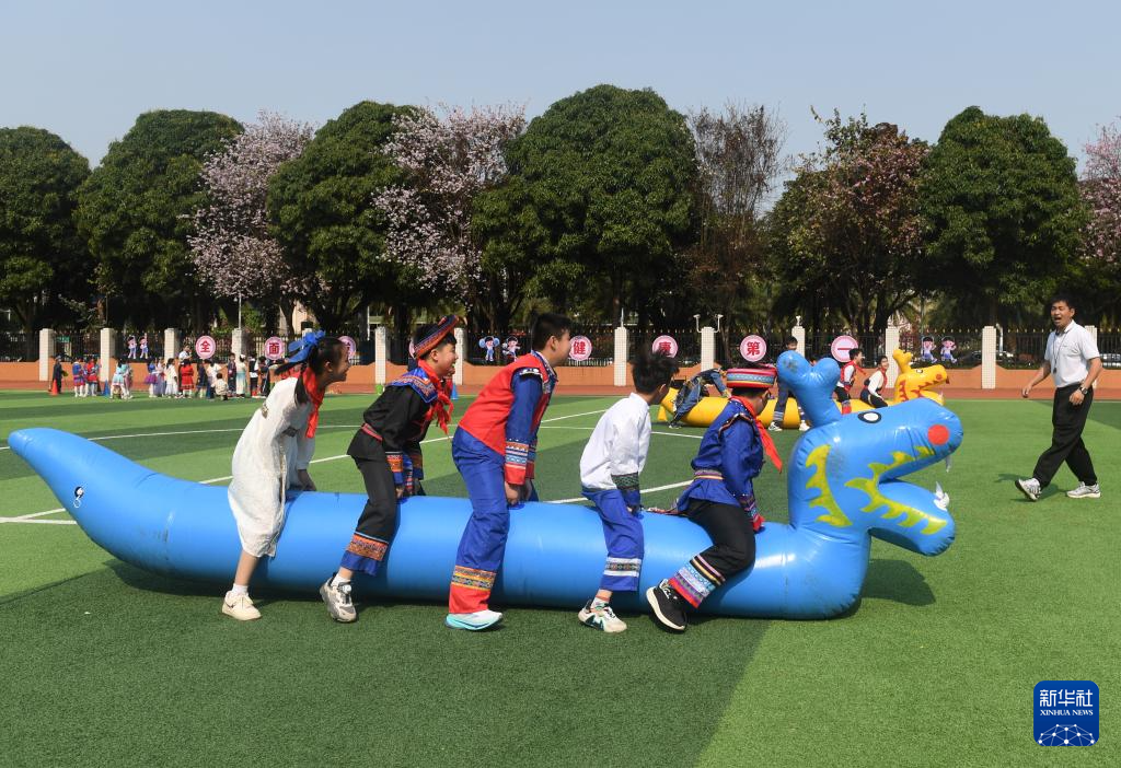 當日,廣西南寧市民族大道東段小學舉行2025年“鑄牢中華民族共同體意識”主題活動暨“廣西三月三”民族藝術節,孩子們以多種方式喜迎佳節。