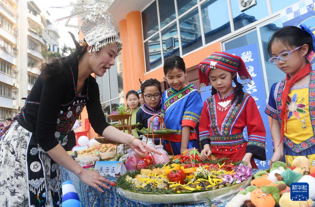 當日,廣西南寧市濱湖路小學舉辦“石榴花開三月三 籽籽同心向未來”活動,通過唱歌、跳舞、美食展示等豐富多彩的活動,迎接傳統節日“三月三”的到來。