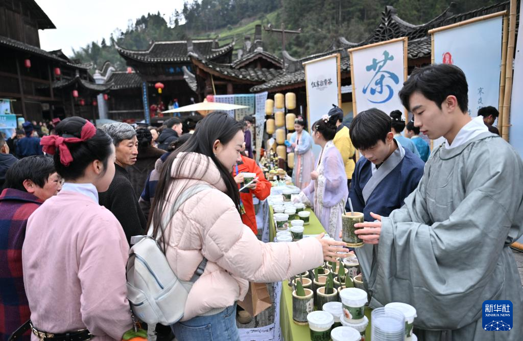 當日,湖北省恩施土家族苗族自治州宣恩縣夢回“茶馬古道”春茶品鑒活動啟幕,“宋風雅集”茶市、茶園服裝秀、茶山非遺展演等系列活動,吸引眾多游客參與其中品味春茶,沉浸式感受茶鄉的魅力。