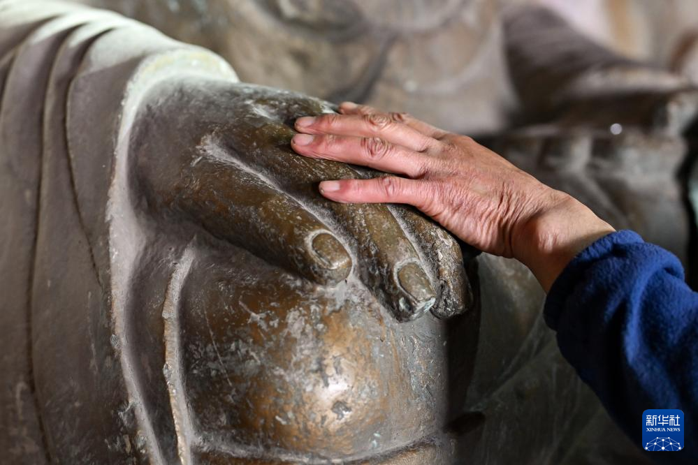 3月25日,馮開平在金燈寺水陸殿擦拭佛像。