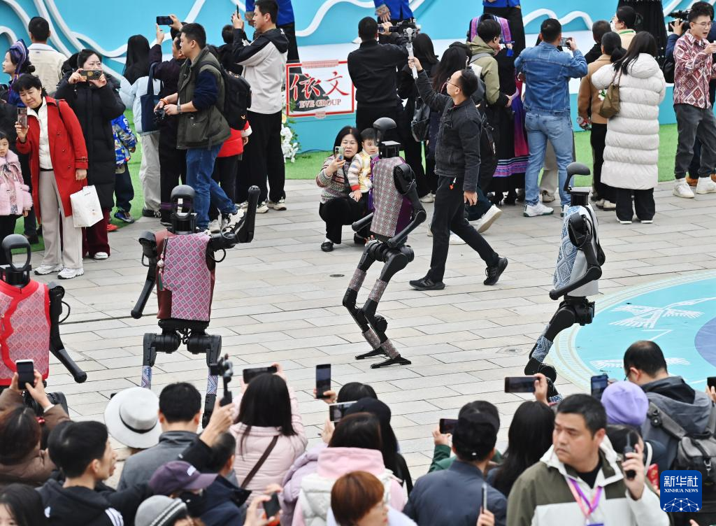 3月31日,機器人在開幕式現場跳舞。