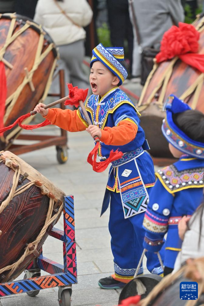 3月31日,演員在活動現場表演會鼓。
