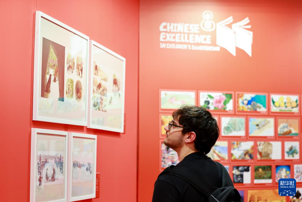 4月1日,在意大利博洛尼亞,觀眾在第62屆博洛尼亞國際兒童書展中國插畫展區參觀。