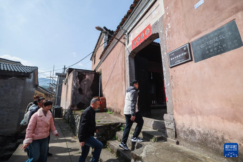 4月1日,嶺北鎮文化特派員、浙江工業職業技術學院的講師李亞(右)與嶺北鎮黨委委員樓炳在高臺門古建筑群里查看古建筑的維保現狀。