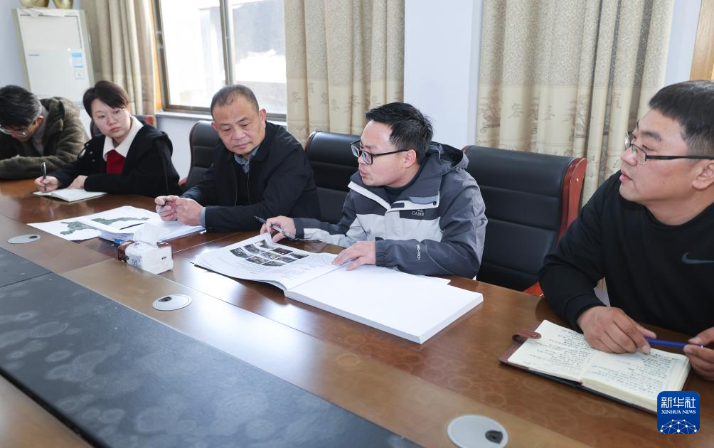 4月1日,嶺北鎮文化特派員、浙江工業職業技術學院的講師李亞(右二)與嶺北鎮、村干部以及村文保員在嶺北周社區黨群服務中心開展古建筑保護座談會。