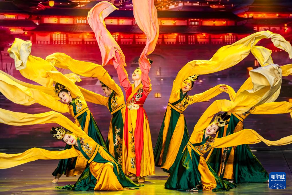 4月1日,中國石油文化藝術工作者聯合會的演出人員在表演舞蹈《禮·袖》。